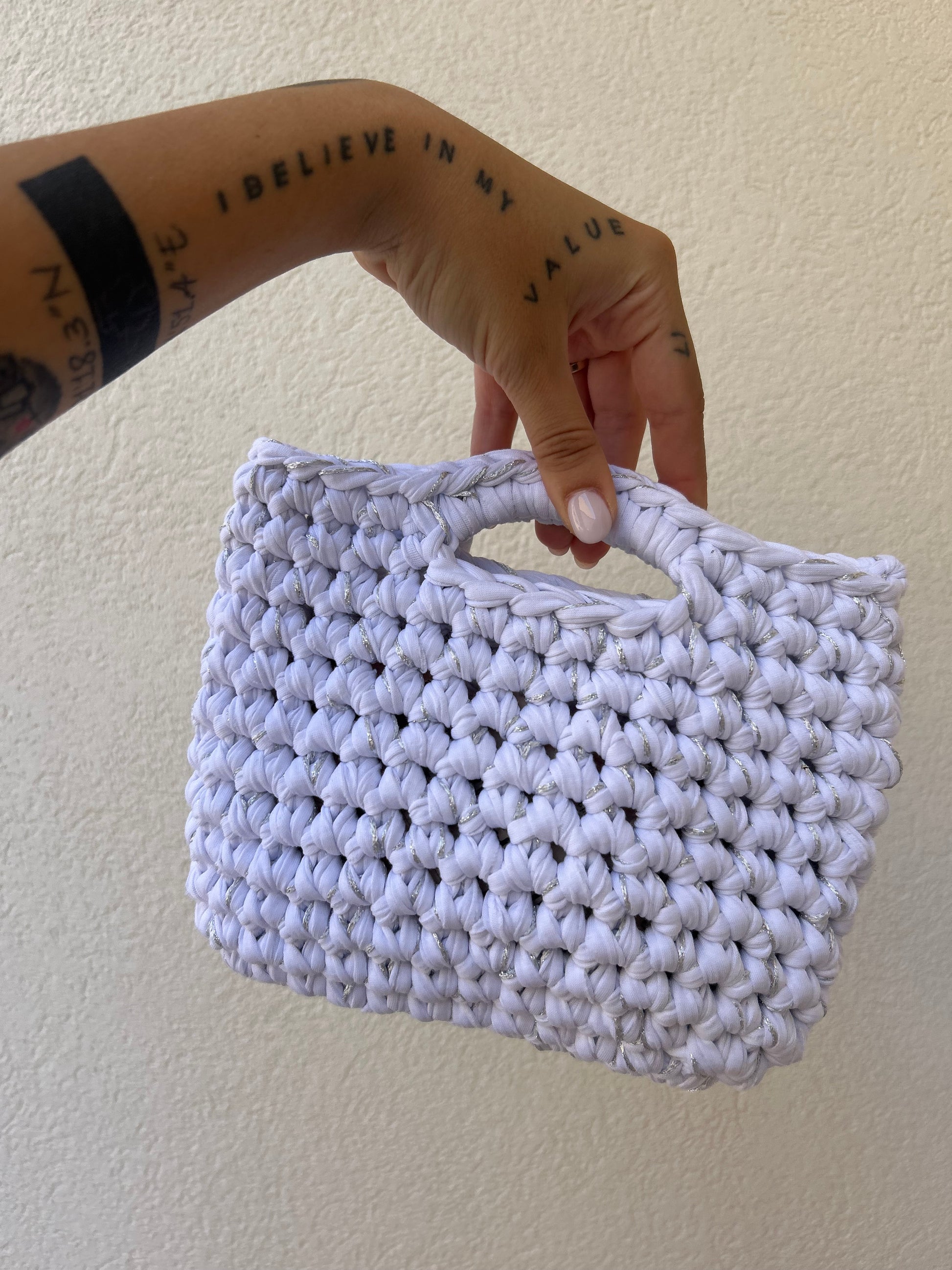 Bianco e argento - borsetta a mano