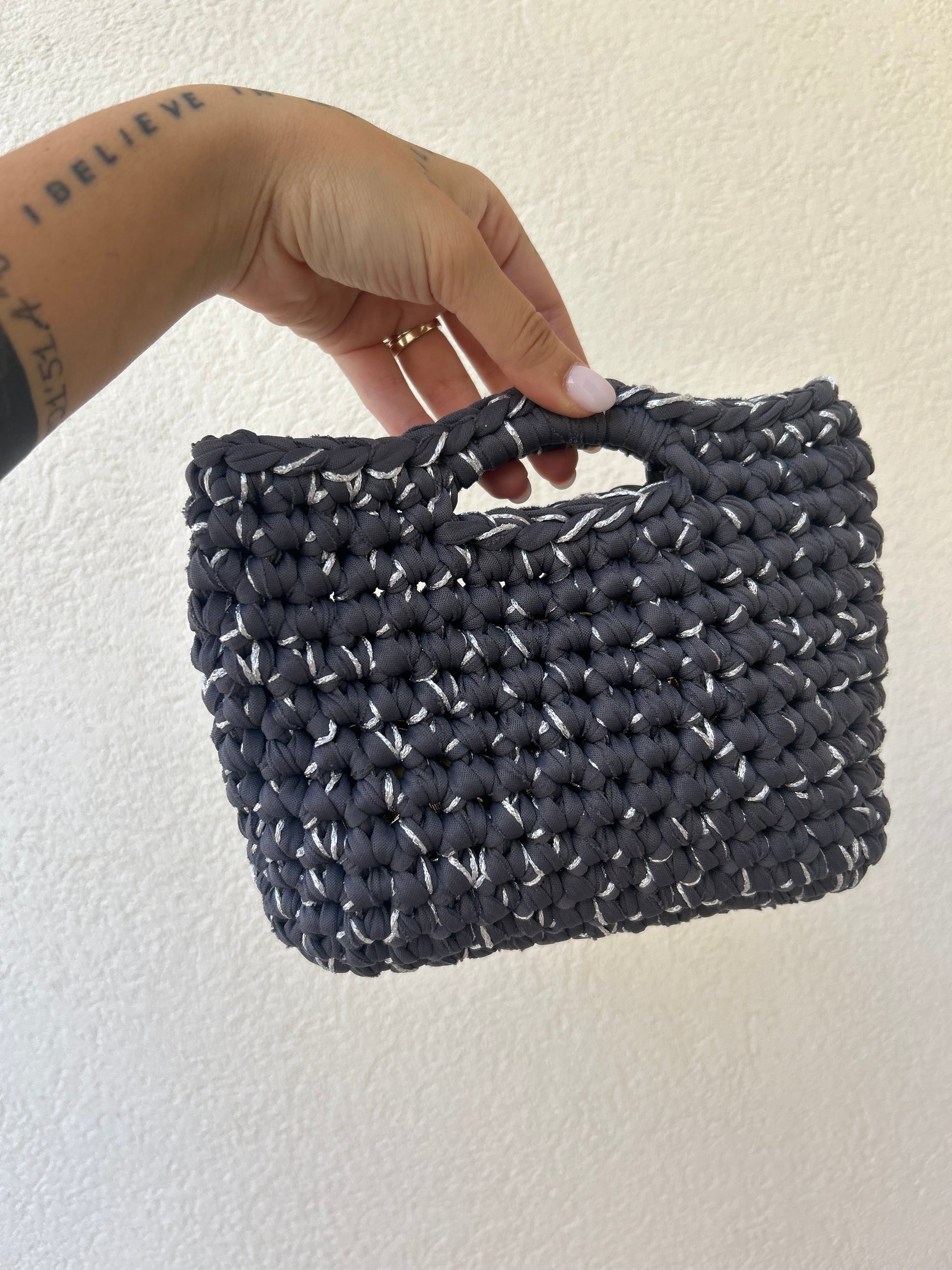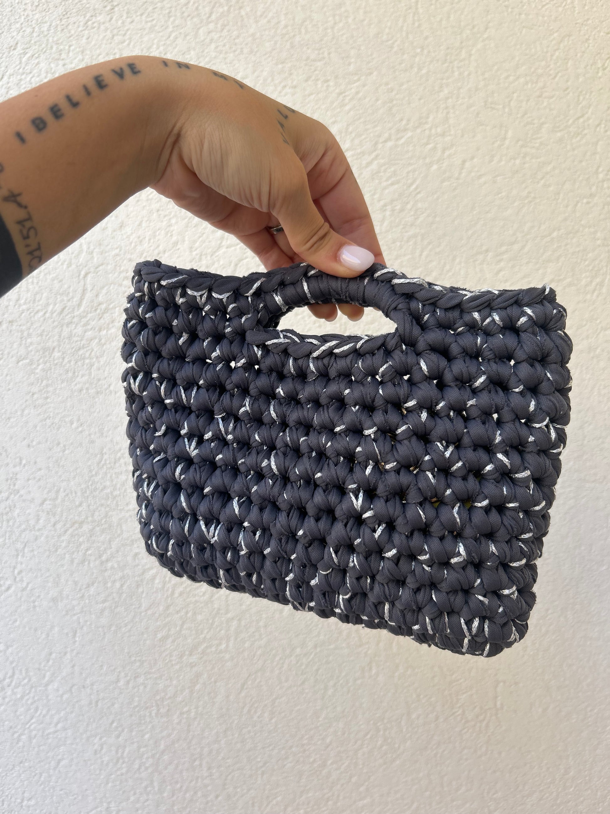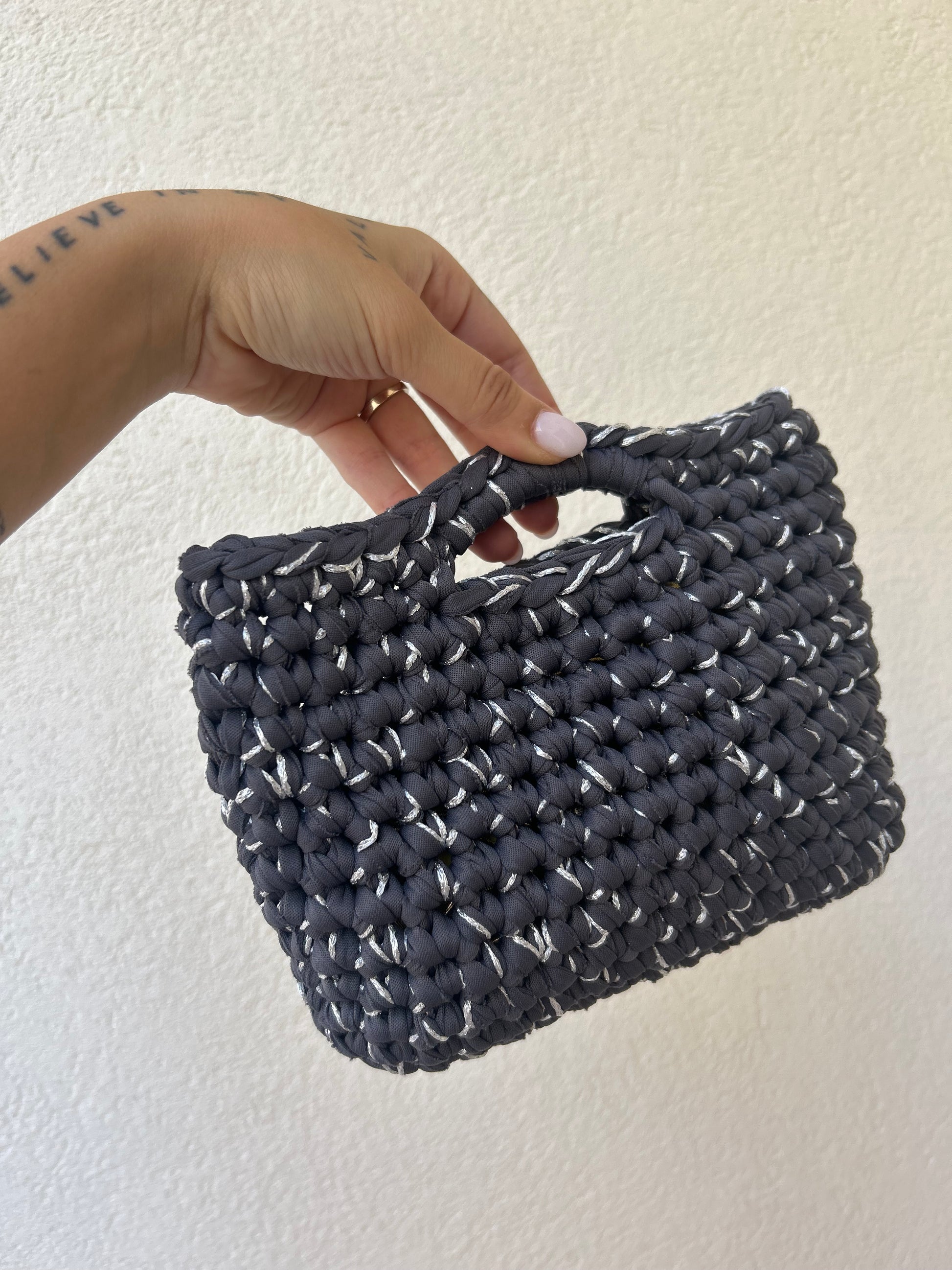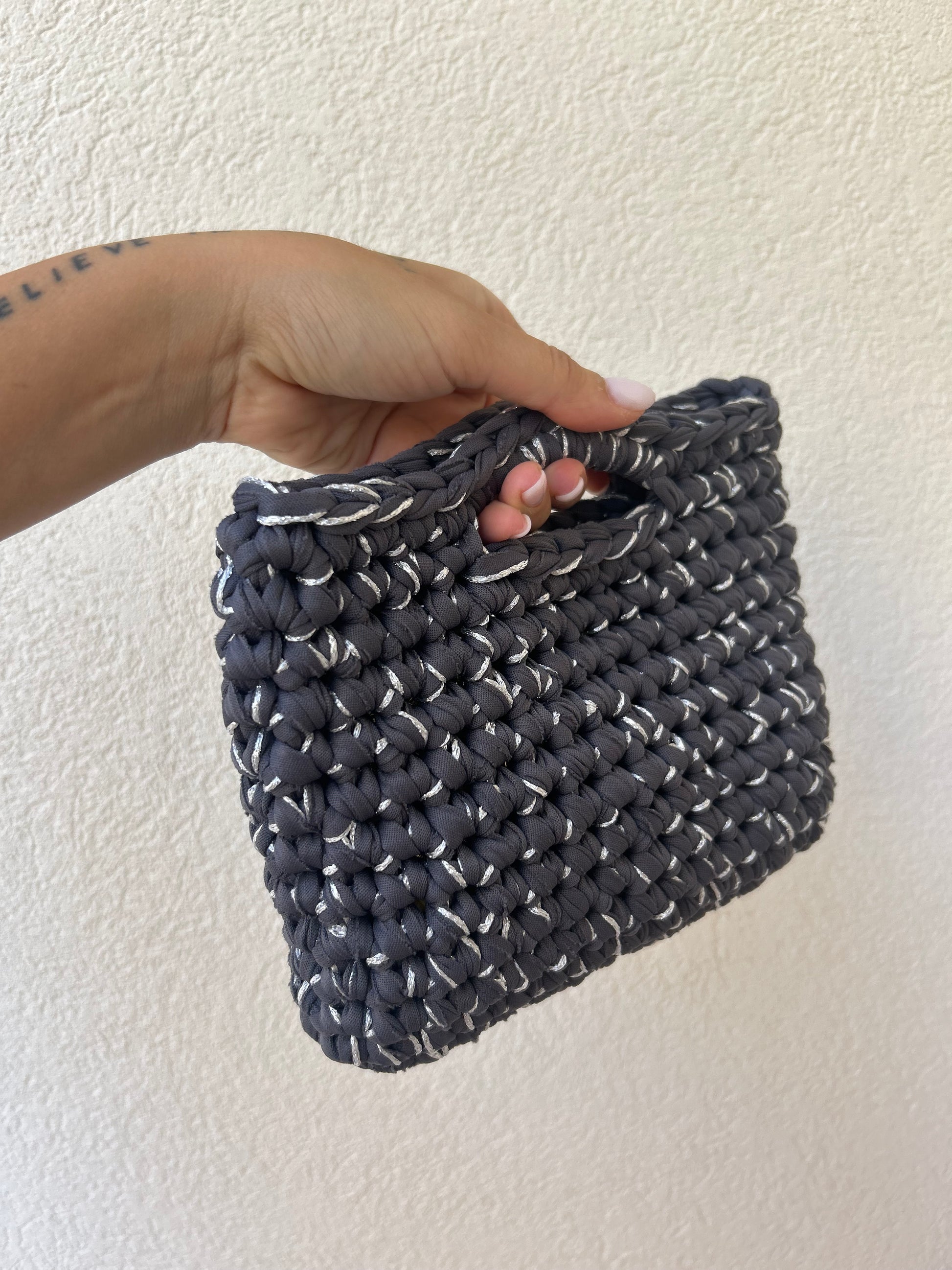 Grigio antracite e argento - borsetta a mano